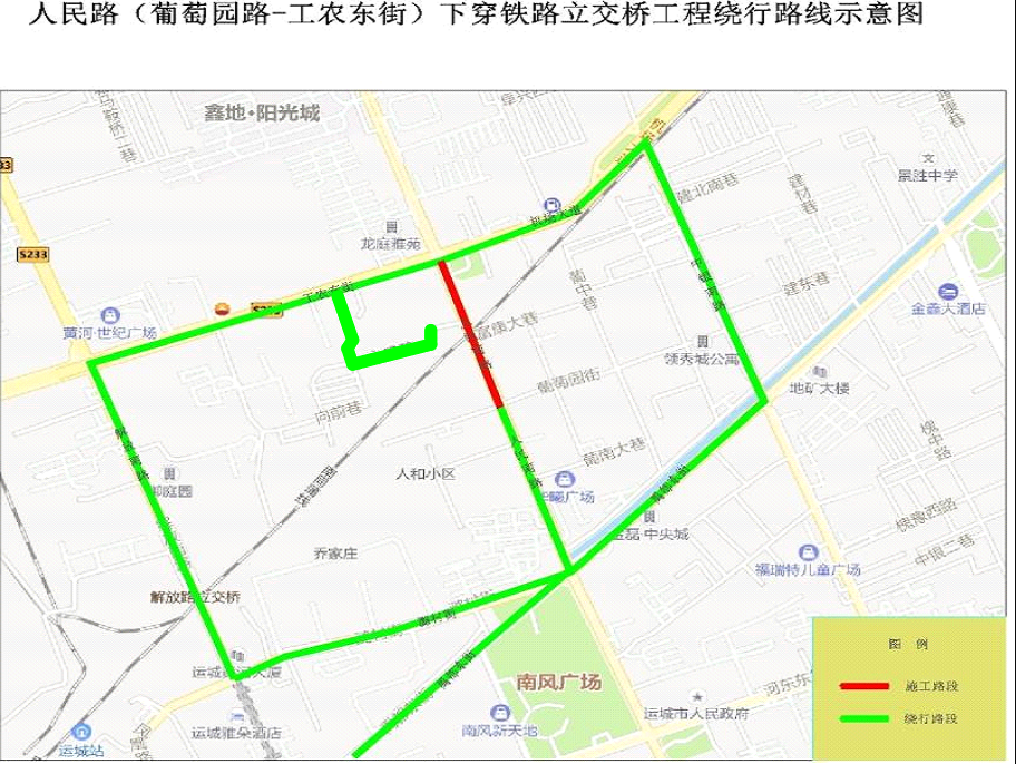 运城市人民路下穿铁路立交桥工程(葡萄园街口——工农街口)是2020年市委、市政府确定的“1311”重大工程项目(运办发(2020)7号文)。为确保人民路下穿铁路立交桥工程能够安全顺利施工,现通告如下: